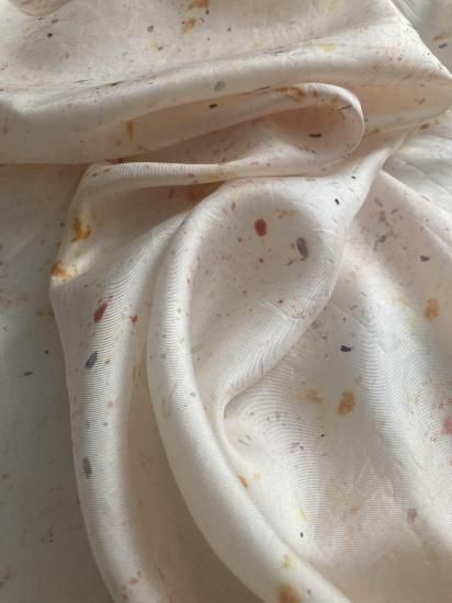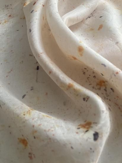 オーダー後、お客様に送って頂いたお花を使用しバンドルダイという染色法で1枚1枚手で染めるシルクの大判スカーフです。